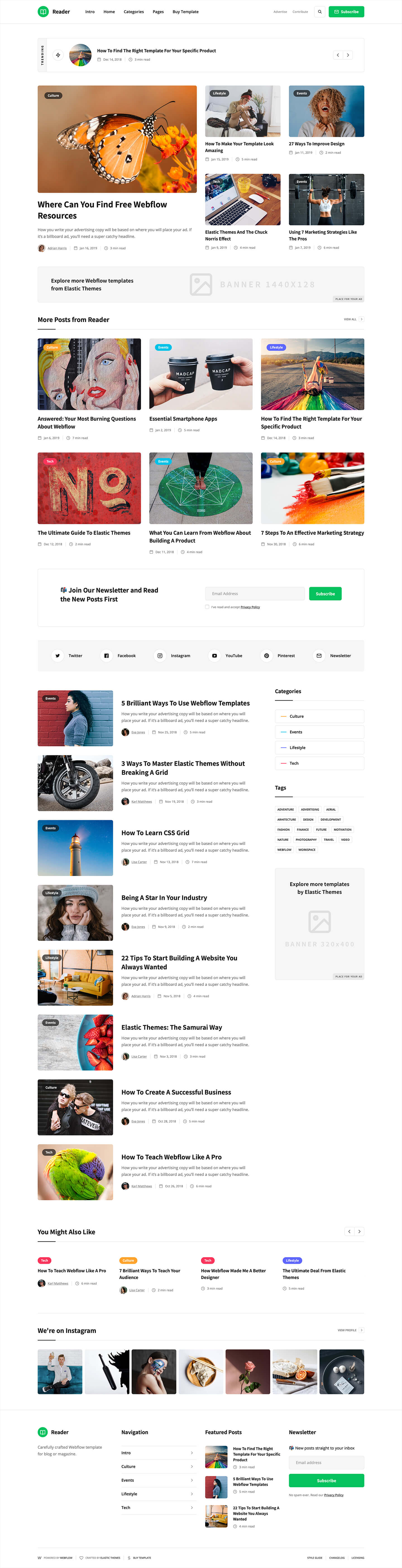 "I recently purchased the Reader Template to build out my Webflow blog site. Elastic Themes were extremely quick respond to my question. They even created a custom video tutorial to help me fix my issue and gave me additional Webflow resources to explore further. Top notch experience!"